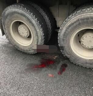 記者看到,水泥攪拌車右后輪處有一大攤血,邊上掉著一塊十多厘米長(zhǎng)的骨頭。水泥攪拌車車后還有一條七八米長(zhǎng)的血跡。