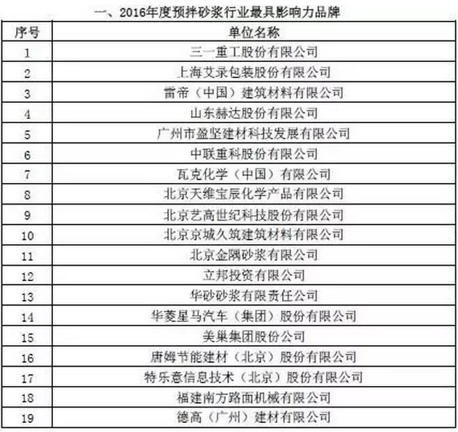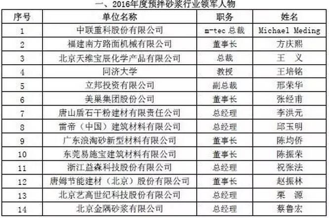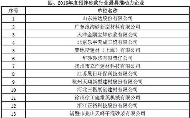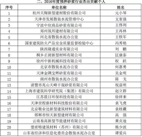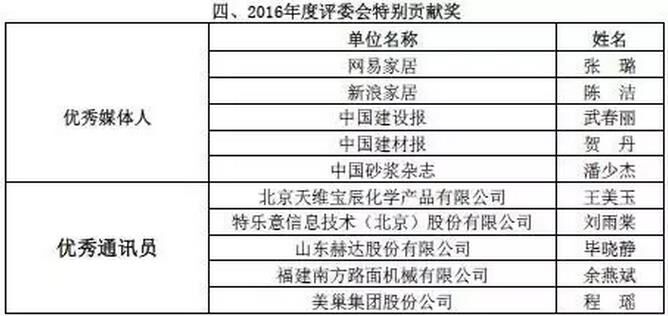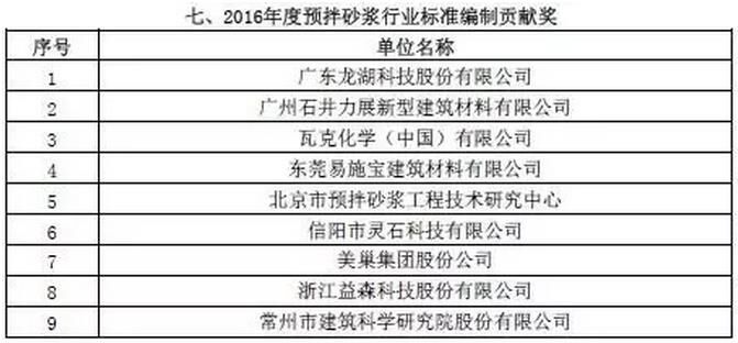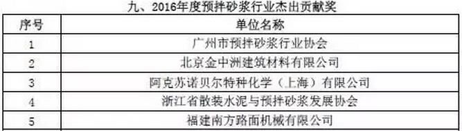 附:2016年度預(yù)拌砂漿行業(yè)表彰評比名單