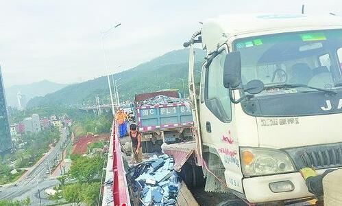 “你知道嗎,差一點點就沖下橋了?!毕肫疖囕v被追尾失控那一刻,小貨車司機徐先生直搖頭。今天凌晨4點多,在海滄大橋進島方向91號燈桿處,一輛運載玻璃的小貨車被水泥攪拌車追尾,整個車頭騎上海滄大橋鐵護欄。值得慶幸的是,這起事故沒有造成人員傷亡。