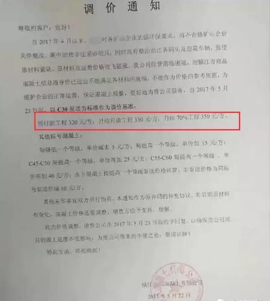 各建筑、施工單位——自2017年3月以來水泥連續(xù)調(diào)價(jià),黃沙、石子等原材料大幅上漲,并供應(yīng)緊張,混凝土行業(yè)各企業(yè)已無法正常運(yùn)行,砼行業(yè)資金十分緊張,隨時(shí)有停產(chǎn)危險(xiǎn)……