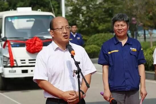 徐工環(huán)境總經(jīng)理劉慶東在發(fā)車儀式上致辭