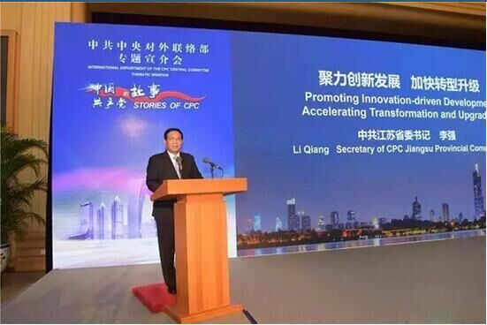 8月31日,中共中央對(duì)外聯(lián)絡(luò)部在京舉行“中國共產(chǎn)黨的故事:江蘇省委的實(shí)踐——?jiǎng)?chuàng)新驅(qū)動(dòng)、轉(zhuǎn)型發(fā)展”專題宣介會(huì),邀請(qǐng)中共江蘇省委向訪華的外國政黨政要、駐華使館高級(jí)外交官、外國商會(huì)、跨國公司駐華代表等,宣介習(xí)近平總書記治國理政新理念新思想新戰(zhàn)略在江蘇的貫徹落實(shí)情況,展示江蘇省委落實(shí)習(xí)近平總書記重要指示精神,在創(chuàng)新驅(qū)動(dòng)轉(zhuǎn)型發(fā)展生動(dòng)實(shí)踐中的突出成效和經(jīng)驗(yàn)做法。