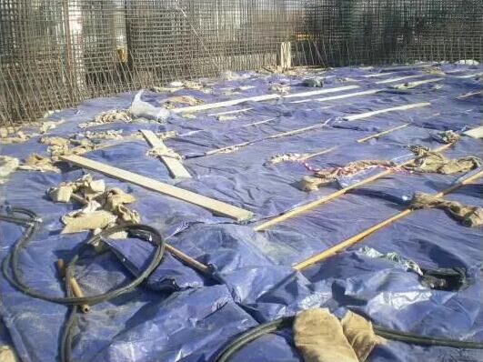 頂板、梁混凝土上部保溫為在新澆筑的混凝土表面先覆蓋塑料布再覆蓋一層草墊。對(duì)于邊角等薄弱部位或迎風(fēng)面應(yīng)加蓋草墊并做好搭接。如室外日平均氣溫在0℃及0℃以下采取在澆制的混凝土表面蓋一層塑料膜,以防稻草等覆蓋物受潮,再在混凝土周圍蓋上稻草,最后在坑口上蓋一層塑料以增強(qiáng)保溫性,來保證混凝土的質(zhì)量?;炷恋娜肽囟瓤刂圃?℃以上;混凝土澆筑后的起始養(yǎng)護(hù)溫度不低于5℃,若達(dá)不到以上溫度,則要提高養(yǎng)護(hù)水溫以滿足要求。