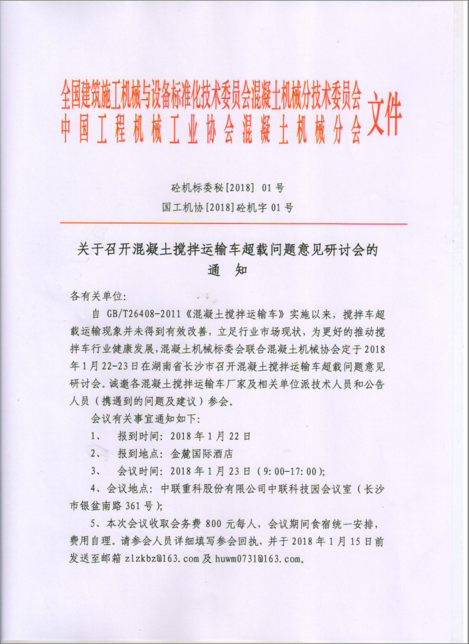 關(guān)于召開混凝土攪拌運輸車超載問題意見研討會的通知