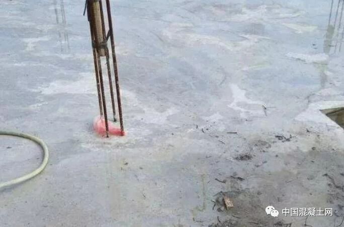在干燥的春季,混凝土摻了高效緩凝減水劑后,表面被風(fēng)干,水分蒸發(fā)很快,表面形成一層“硬殼”。當(dāng)氣溫較高并蒸發(fā)量大時,應(yīng)采用邊噴水霧的方法,可以解決混凝土“結(jié)殼”的現(xiàn)象。