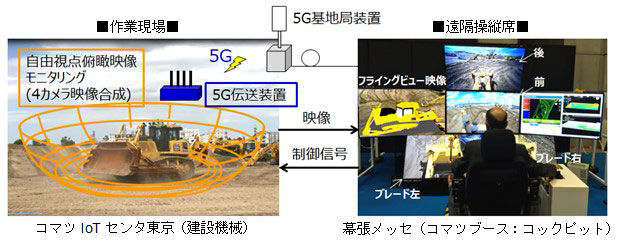 株式會(huì)社小松制作所(KOMATSU)正與電訊商NTT DoCoMo聯(lián)合開(kāi)發(fā)使用“5G”通訊技術(shù),未來(lái)可實(shí)現(xiàn)遠(yuǎn)程操控工程機(jī)械施工。2018年的世界移動(dòng)大會(huì)·上海(簡(jiǎn)稱“MWC上海”),一個(gè)與遠(yuǎn)在石家莊的挖掘機(jī)相連的駕駛室吸引了人們的眼球,真實(shí)呈現(xiàn)了了5G技術(shù)“物物相連”的場(chǎng)景。在2018世界智能制造大會(huì)上,“現(xiàn)代挖掘機(jī)駕駛室長(zhǎng)途操控臺(tái)”可通過(guò)顯示屏實(shí)時(shí)操控遠(yuǎn)在河北工地的挖掘機(jī)。據(jù)了解,兩臺(tái)設(shè)備皆是河北小松在當(dāng)?shù)厥┕がF(xiàn)場(chǎng)的智能挖掘機(jī),基于5G信號(hào)的高寬帶、低時(shí)延性能完成實(shí)時(shí)傳輸。