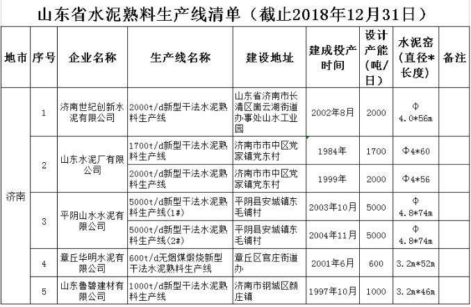 將截止2018年12月31日的山東省水泥熟料和平板玻璃生產線清單予以公示,共計75條水泥熟料生產線。