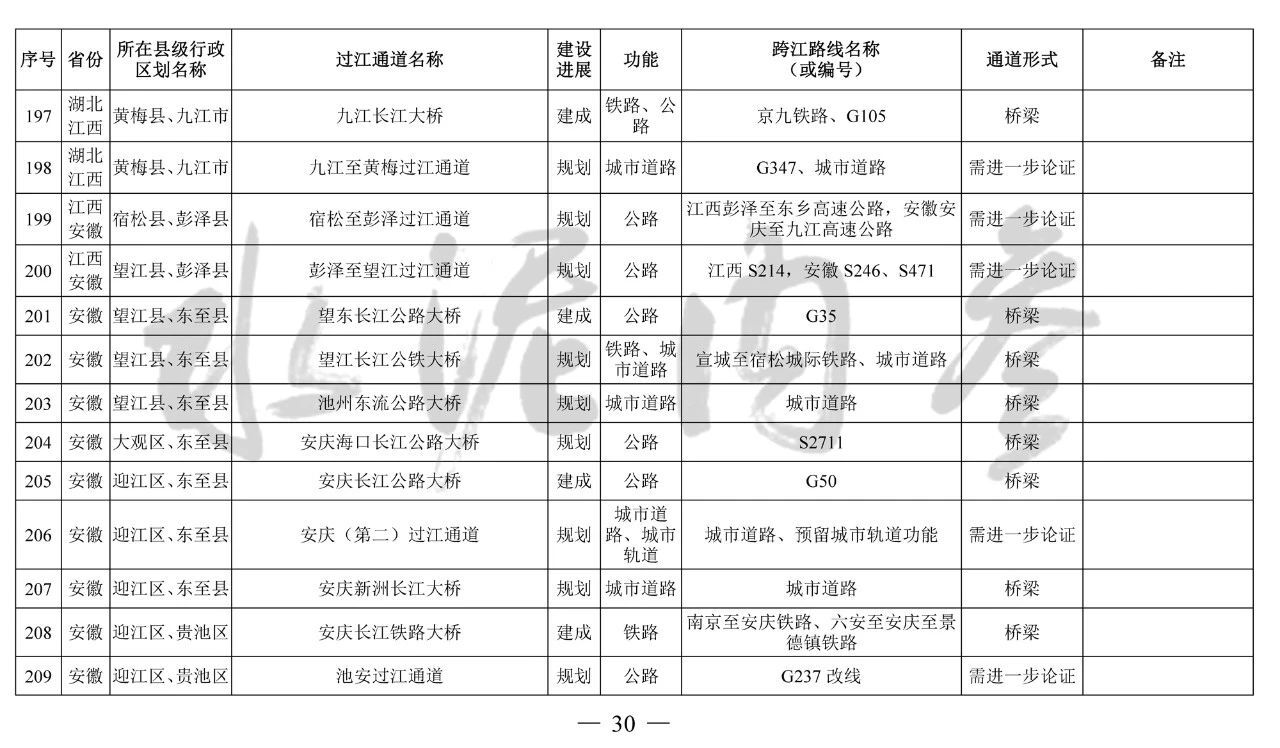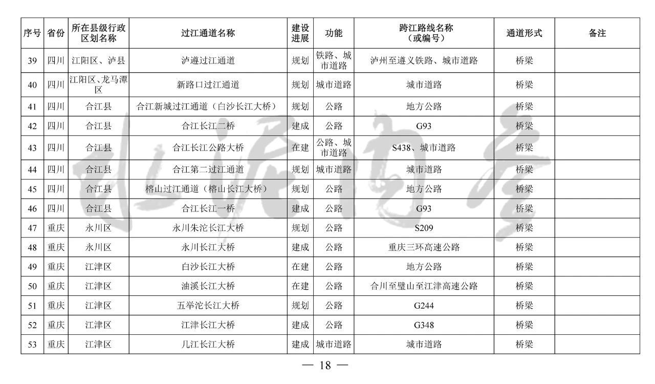??四、本《規(guī)劃》主要布局橫跨長江干線主要航道、具有交通功能的過江通道項目,對于連接洲島與沿岸、洲島之間的通道項目和不具備交通功能的跨江、沿江建筑物,由省級發(fā)展改革委統(tǒng)籌布局編制相關(guān)規(guī)劃報送我委銜接后組織實施。