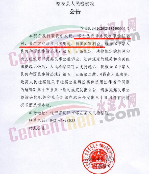 出事了!山水水泥非法占地!檢察院發(fā)公告!