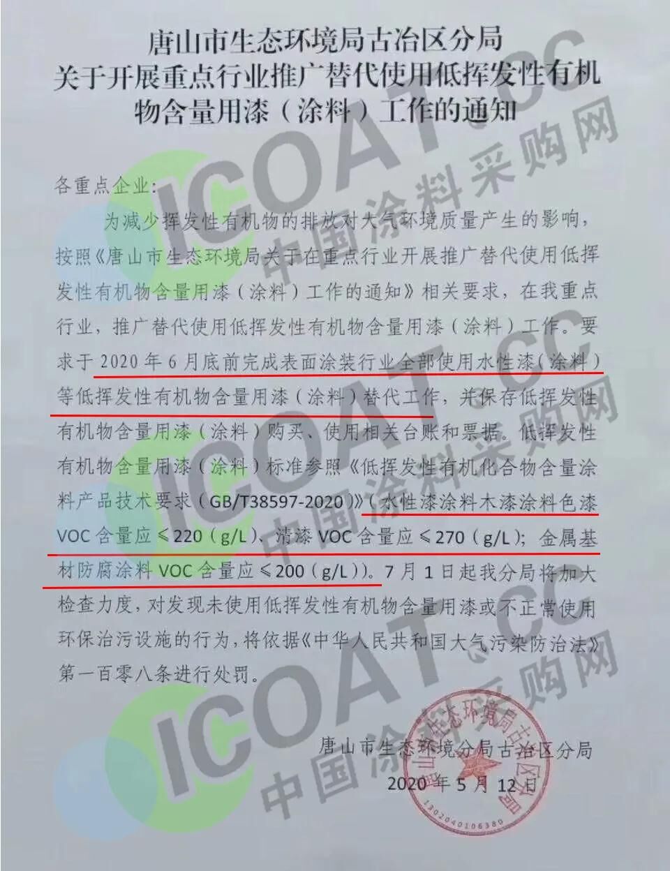 為減少揮發(fā)性有機(jī)物的排放對(duì)大氣環(huán)境質(zhì)量產(chǎn)生的影響,按照《唐山市生態(tài)環(huán)境局關(guān)于在重點(diǎn)行業(yè)開(kāi)展推廣替代使用低揮發(fā)性有機(jī)物含量用漆(涂料)工作的通知》相關(guān)要求,在我重點(diǎn)行業(yè),推廣替代使用低揮發(fā)性有機(jī)物含量用漆(涂料)工作,要求于20206月底前完成表面涂裝行業(yè)全部使用水性漆(涂料)等低揮發(fā)性有機(jī)物含量用漆(涂料)替代工作,并保存低揮發(fā)性有機(jī)物含量用漆(涂料)購(gòu)買、使用相關(guān)臺(tái)賬和票據(jù)。