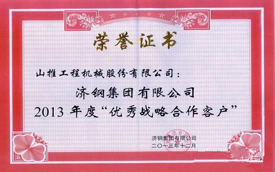 摘要:近日,山推股份公司榮獲濟鋼集團有限公司2013年度“優(yōu)秀戰(zhàn)略合作客戶”榮譽證書。