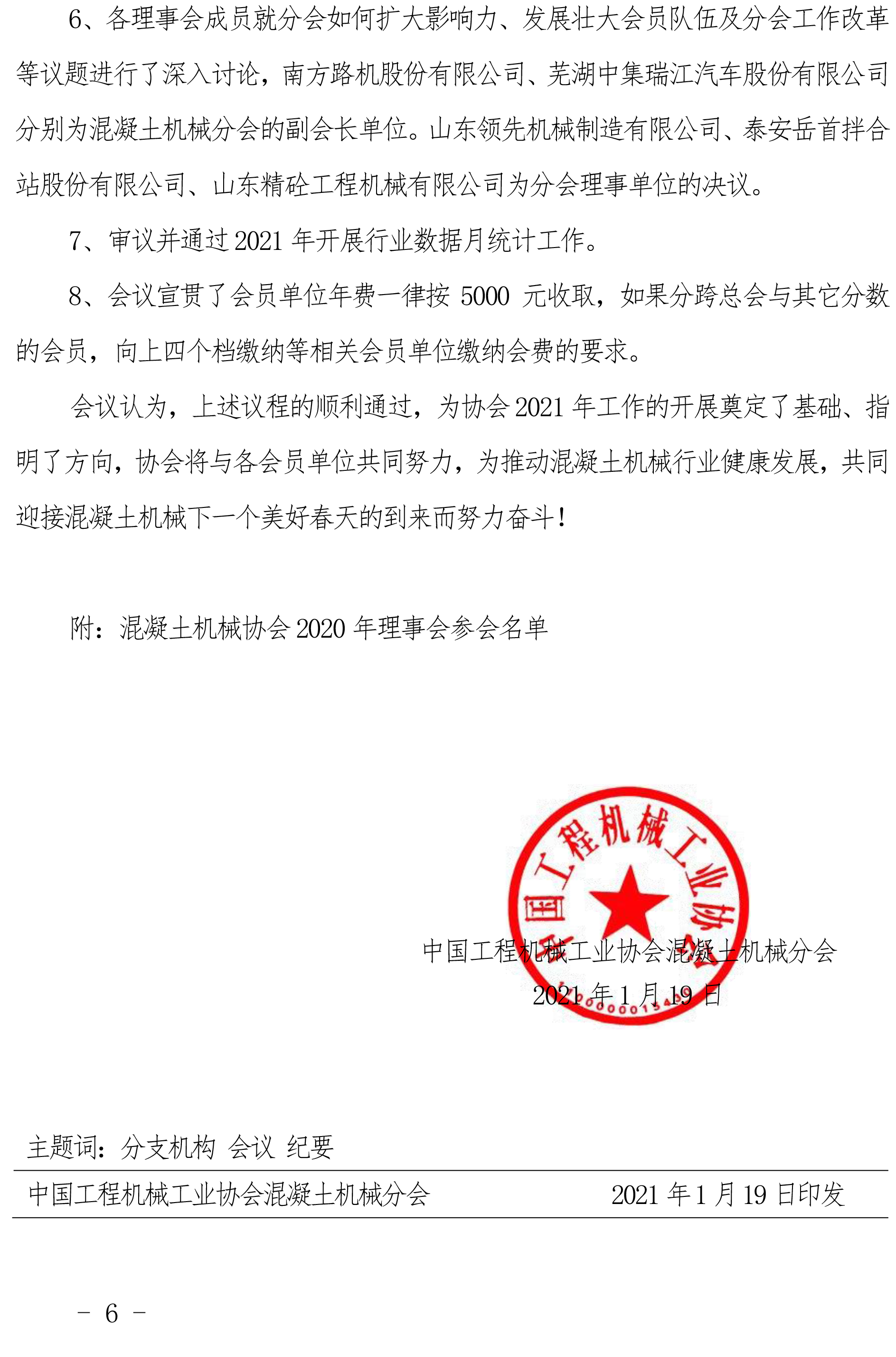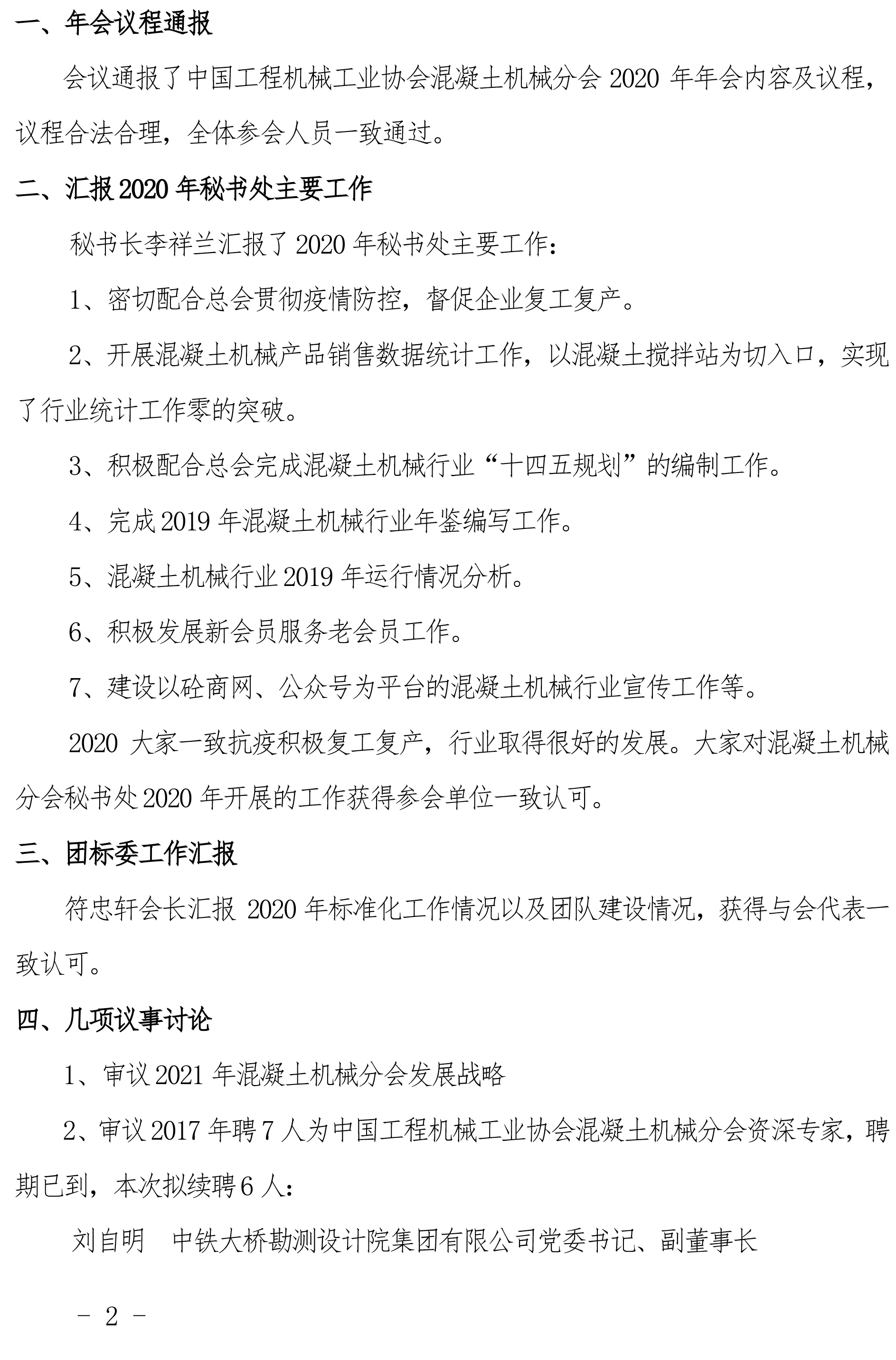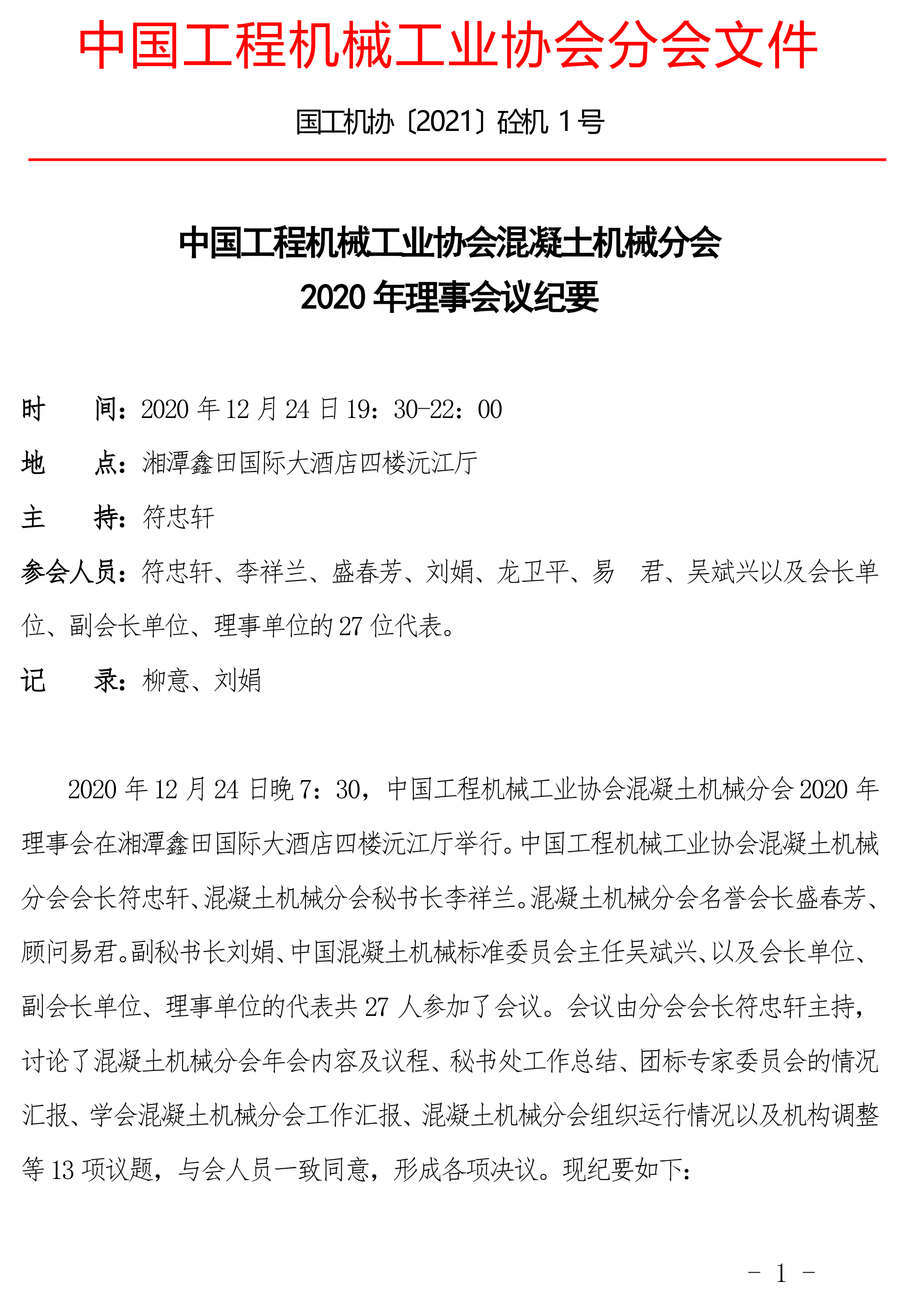 中國工程機(jī)械工業(yè)協(xié)會混凝土機(jī)械分會 2020 年理事會議紀(jì)要