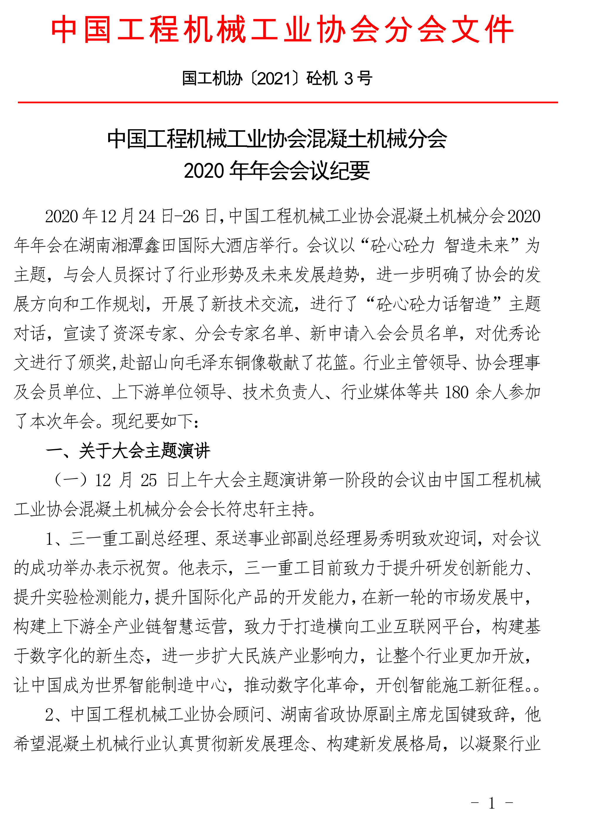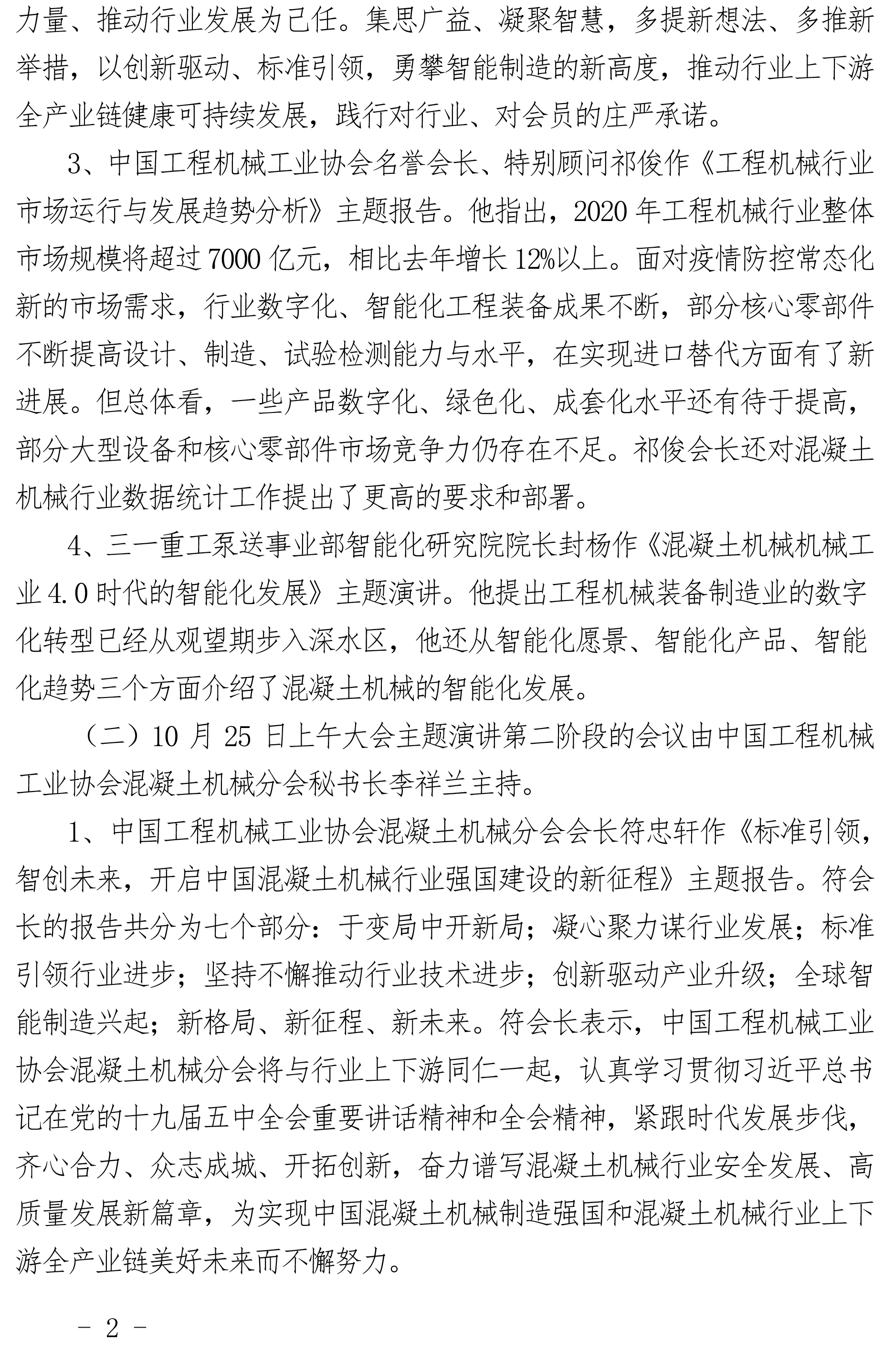中國工程機械工業(yè)協(xié)會混凝土機械分會 2020年年會會議紀要