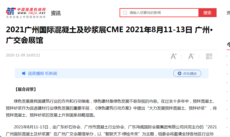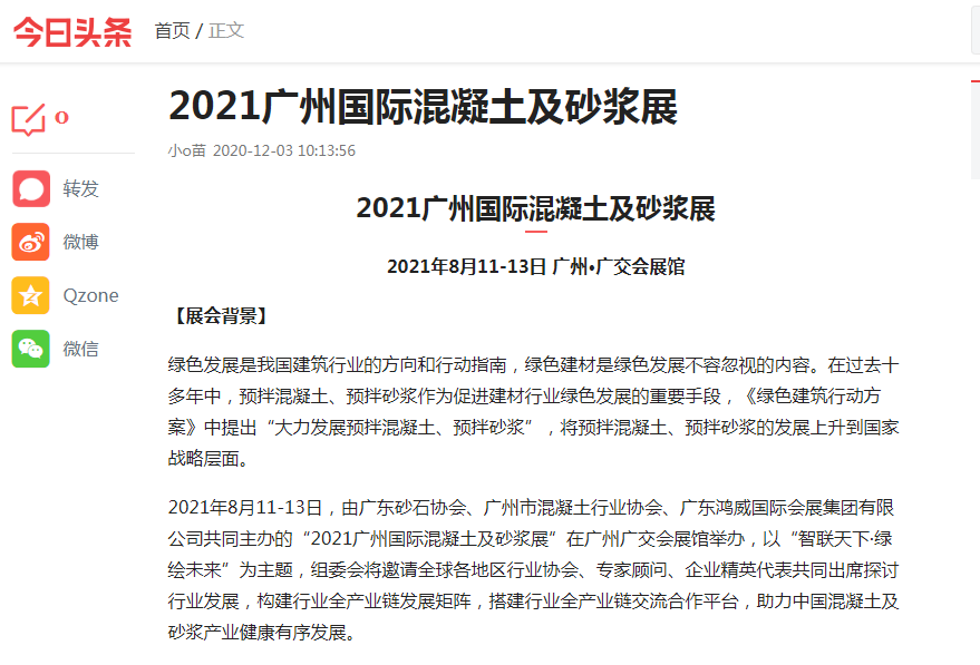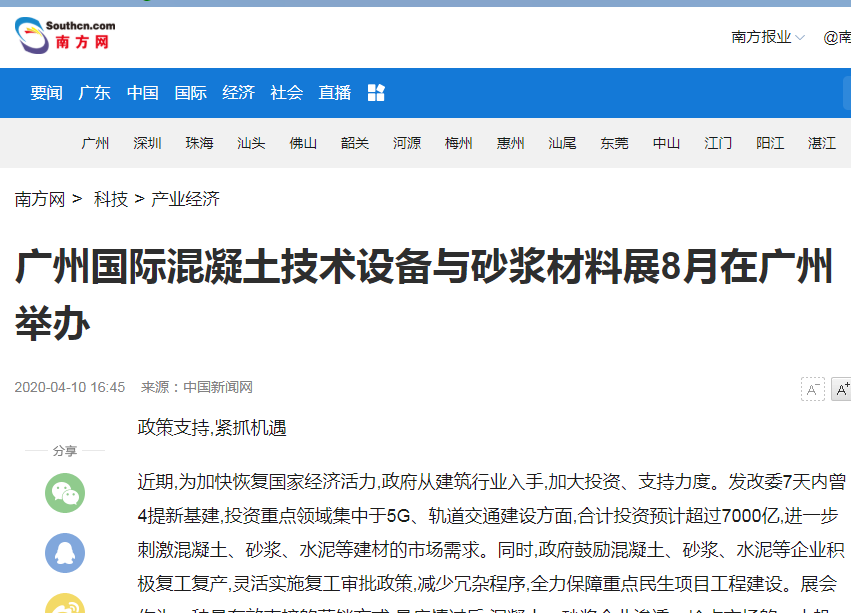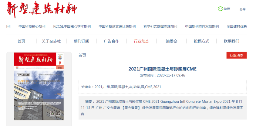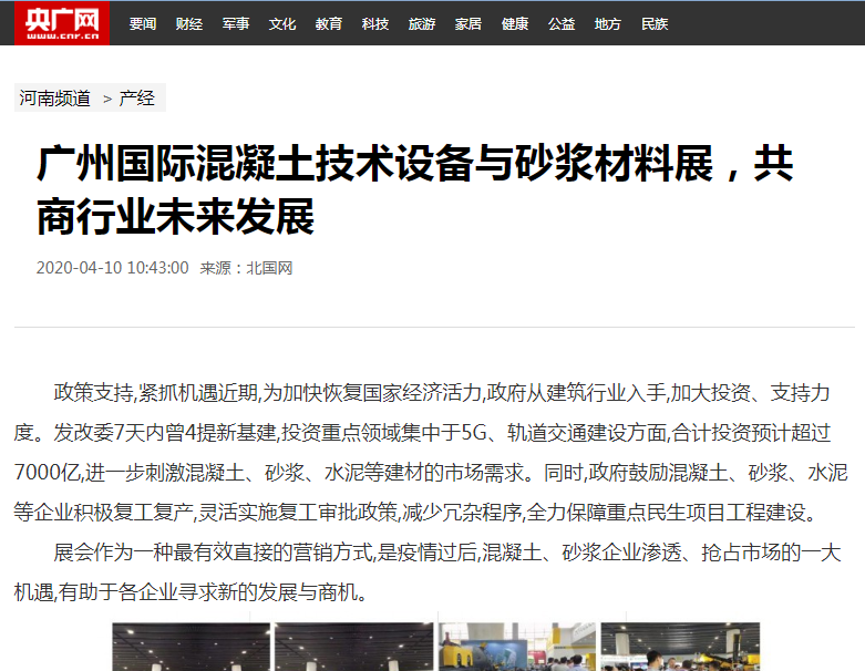 行業(yè)媒體高度宣傳報(bào)道,2021廣州國(guó)際混凝土及砂漿展全面來(lái)襲!