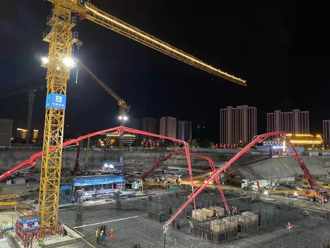 此次施工創(chuàng)造了天水市單次筏板混凝土澆筑量最大及澆筑厚度最大等多項(xiàng)記錄,標(biāo)志著中深財(cái)富中心超高層主體施工已全面展開。