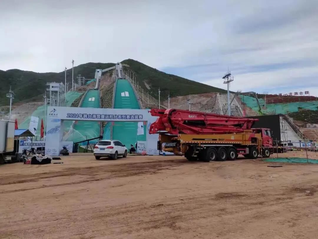 ▲三一泵車在淶源國家跳臺(tái)滑雪訓(xùn)練科研基地協(xié)助拍攝