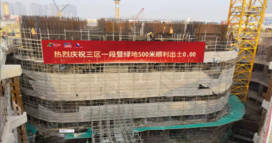 歷時五個月的日夜奮戰(zhàn),南京綠地金茂國際金融中心499.8米超高層核心筒正負零板正式澆筑完畢,標志著江北新區(qū)核心區(qū)天際線的建設(shè)即將拉開帷幕。