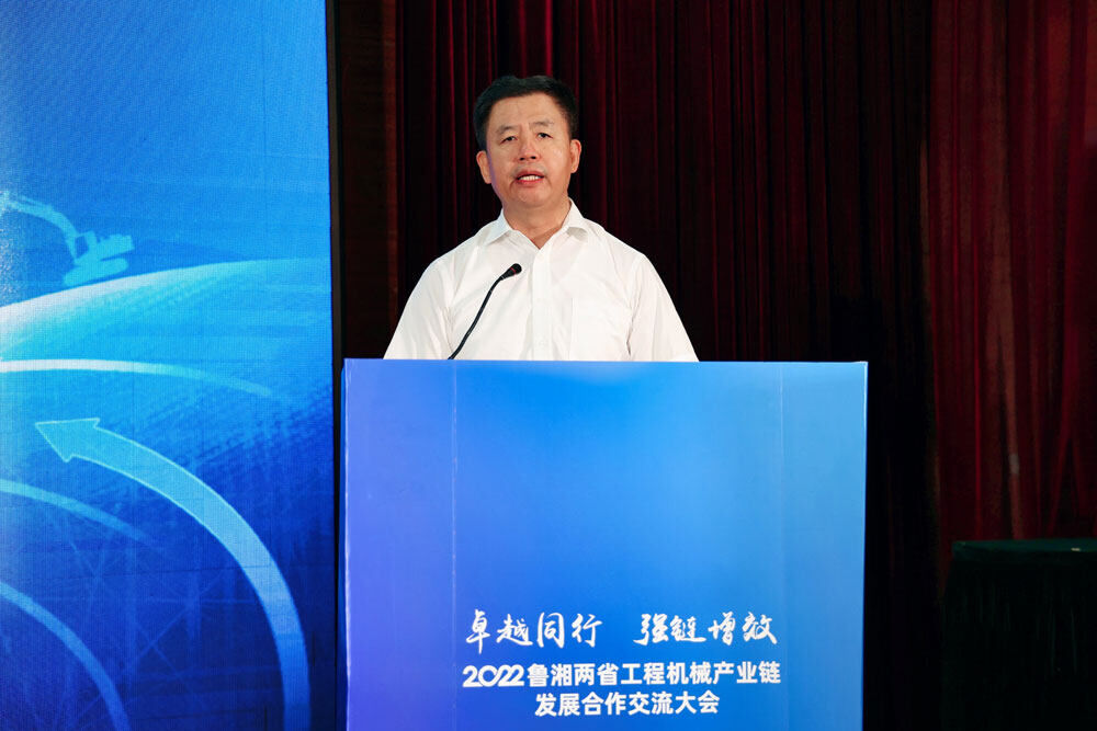 山東省工業(yè)和信息化廳副廳長(zhǎng)靖士寬表示:“山東是裝備制造業(yè)大省,產(chǎn)品種類豐富,農(nóng)業(yè)機(jī)械、機(jī)械基礎(chǔ)件、鑄造、工程機(jī)械、內(nèi)燃機(jī)、醫(yī)療設(shè)備、汽車行業(yè)居全國(guó)前列。從產(chǎn)業(yè)規(guī)模、競(jìng)爭(zhēng)力、影響力等方面來(lái)看,湖南省、山東省都是工程機(jī)械強(qiáng)省,都承擔(dān)著國(guó)家工程機(jī)械產(chǎn)業(yè)鏈供應(yīng)鏈安全的重任,‘優(yōu)勢(shì)互補(bǔ)、協(xié)同創(chuàng)新、合作共贏’將會(huì)成為我們兩省下一步合作的主旋律。這次共同舉辦2022魯湘兩省工程機(jī)械產(chǎn)業(yè)鏈發(fā)展合作交流大會(huì),是推動(dòng)湖南、山東兩省工程機(jī)械產(chǎn)業(yè)發(fā)展,促進(jìn)兩省產(chǎn)業(yè)鏈企業(yè)合作,打通兩省產(chǎn)業(yè)鏈協(xié)作創(chuàng)新,引領(lǐng)全國(guó)工程機(jī)械產(chǎn)業(yè)發(fā)展的重要實(shí)踐。