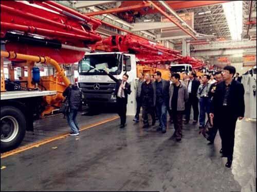 25日上午,考察團(tuán)全體成員在三一重工一號(hào)會(huì)議室召開了2014年度山東省混凝土協(xié)會(huì)會(huì)長(zhǎng)工作會(huì)議,三一重工泵送營(yíng)銷公司副總經(jīng)理王暾先生致歡迎詞,會(huì)議對(duì)2014年全年工作進(jìn)行部署、攪拌站評(píng)優(yōu)等問(wèn)題展開討論。12點(diǎn)40分,考察團(tuán)參觀了三一產(chǎn)業(yè)園,一進(jìn)廠區(qū),一排排鮮紅锃亮的混凝土泵車像是巨人般列隊(duì)歡迎,亞洲最大的花園式18號(hào)廠房、一塵不染的總裝車間、豐富多彩的企業(yè)文化、振奮人心的發(fā)展前景,讓考察團(tuán)領(lǐng)導(dǎo)班子頻頻點(diǎn)贊,感嘆三一不愧為世界級(jí)工程機(jī)械制造商,充分肯定了三一重工在混凝土行業(yè)中的龍頭地位。參觀后,考察團(tuán)集體合影留念。