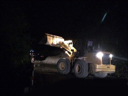8月11日晚上,303省道巧家段由于下雨引起山體塌方,昭通公路局調(diào)撥的1臺柳工CLG855裝載機(jī),也在緊張地進(jìn)行搶險工作。