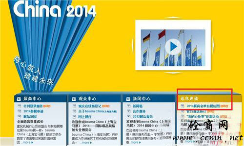 1.電腦用戶可以直接在bauma China 2014的官方網(wǎng)站上查看(按步驟點擊紅色方框部分即可)
