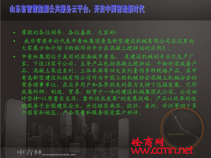 山東智慧能源公共服務(wù)平臺于6月16日開通,該平臺可以實現(xiàn)對鍋爐、電梯、變頻機(jī)組、分布式光伏電站、熱力管網(wǎng)、等運(yùn)行數(shù)據(jù)實時在線采集和分析控制,為中小企業(yè)提供能源管理服務(wù)。青島新型建設(shè)機(jī)械有限公司以徐君飛徐總為代表參加了本次服務(wù)平臺開通儀式,徐總在現(xiàn)場就物聯(lián)網(wǎng)云平臺對攪拌站的管理服務(wù)進(jìn)行闡述。