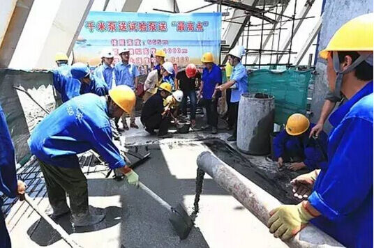 C100混凝土指的是混凝土抗壓強(qiáng)度為100MPa的混凝土,即1平方米C100混凝土上能承受一萬(wàn)噸的重量。當(dāng)前,國(guó)內(nèi)C100混凝土研發(fā)與使用高度尚在探索中,將C100混凝土泵送到1000米完全是建筑行業(yè)最前沿的探索。