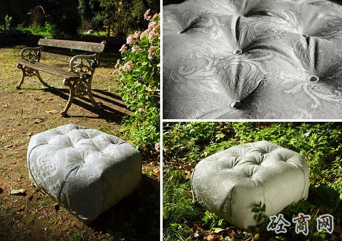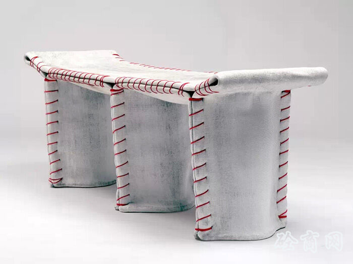 德國設(shè)計(jì)師florian schmid設(shè)計(jì)了一種“縫合混凝土”座椅,這個(gè)設(shè)計(jì)受到了混凝土帆布(CC)材料的影響?;炷敛剂鲜且环N浸漬了布料的柔軟水泥,它在水合過程中變硬,最終形成一個(gè)輕薄的,防水防火的混凝土表皮,將柔軟溫暖的布料質(zhì)感和堅(jiān)硬冰冷的水泥融為一體。