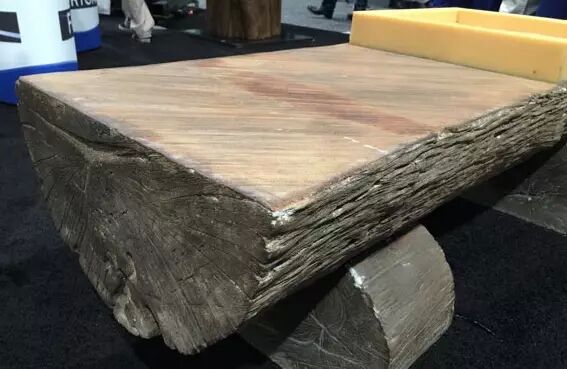 這個凳子看上去是古木,實際上卻是混凝土制作完成。