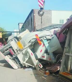 【事故】一攪拌車突然側(cè)翻碾壓兩路人
