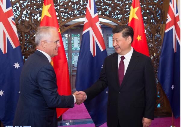 習近平指出,當前,中澳關系保持積極發(fā)展勢頭,兩國各領域交流合作日益密切。中澳全面戰(zhàn)略伙伴關系具有強勁活力,雙方要把握兩國關系發(fā)展正確方向,尊重彼此核心利益和重大關切,確保中澳關系持續(xù)健康穩(wěn)定發(fā)展。希望雙方做好中方“一帶一路”倡議同澳方“北部大開發(fā)”計劃、中國創(chuàng)新驅(qū)動發(fā)展戰(zhàn)略同澳方“國家創(chuàng)新與科學議程”的對接,實施好中澳自由貿(mào)易協(xié)定,探討開展更多務實合作項目,推進司法執(zhí)法、防務等領域交流合作。
