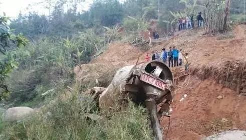 白石人劉某駕駛掛著桂K Y1093號(hào)牌的混凝土攪拌車(chē),拉一車(chē)混凝土前往白雞村卸完混凝土后其駕車(chē)沿省道S370從白雞方向返回, 當(dāng)車(chē)輛行經(jīng)白雞村干河一下坡急轉(zhuǎn)彎路段時(shí)懷疑閃避2名學(xué)生,車(chē)輛失控翻下數(shù)十米深的溪澗中,當(dāng)?shù)匦l(wèi)生院、公安民警、消防接報(bào)先后趕到現(xiàn)場(chǎng)處置開(kāi)展救援。