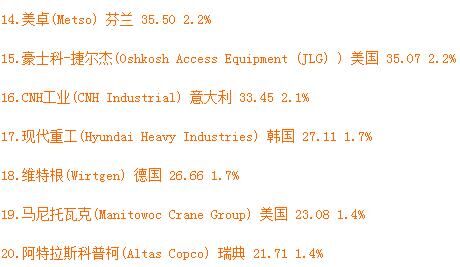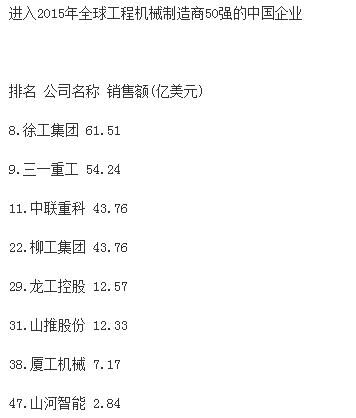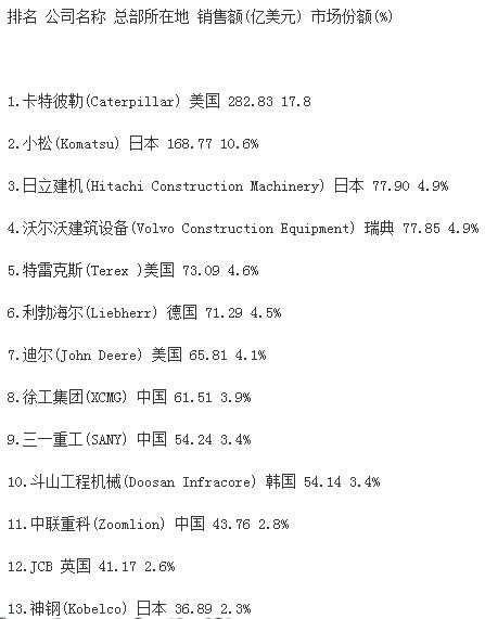 2016年全球工程機(jī)械制造商50強(qiáng)排行榜發(fā)布
