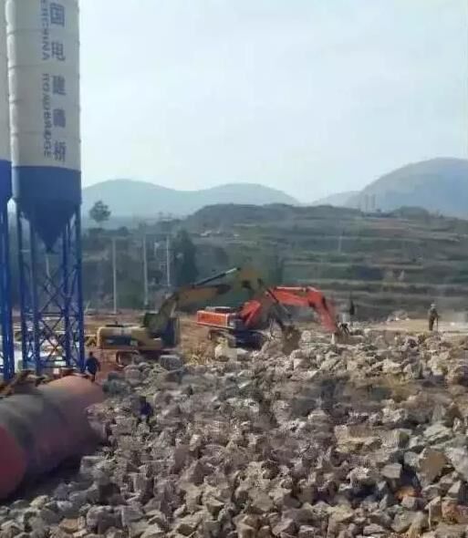 接報后,記者迅速趕往現(xiàn)場調(diào)查。在邢臺縣太子井鄉(xiāng)峰門村村西一公里附近,發(fā)現(xiàn)了該攪拌站?,F(xiàn)場已用鐵架子架起了兩個個高高的圓形槽罐,槽罐罐體上醒目標有“中國電建路橋”幾個大字。一些工人正在一旁施工,兩臺鉤機輛和塔吊也正熱火朝天地作業(yè),工地一角建設(shè)的住房也已經(jīng)蓋有一米來高。大量石子凌亂地散布在施工現(xiàn)場。根據(jù)目測估計,這家攪拌站至少占地20余畝。