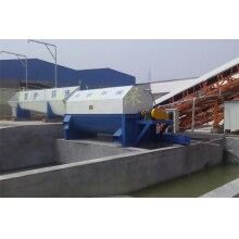 該系統(tǒng)主要由:攪拌車加水清洗裝置,溜槽輸送裝置,砂石漿水分離裝置,和泥漿水后處理裝置組成?;炷凛斔驮O備清洗后,將殘余混凝土排入溜槽中,在高壓水流沖擊下,經溜槽進入砂石分離機,在不斷旋轉的分離機作用下,對混凝土進行充分的清洗,同時將砂、石進行分離,分離后的砂、石在導料葉片的作用下背向流動,再通過提升式出料口排出分離機,分別堆放。清洗后的漿水從分離機的底部排出進入沉淀池逐級沉淀后循環(huán)使用或進入攪拌池回收利用。進入攪拌池(一般情況2個攪拌池)的漿水為了防止沉淀凝固,需通過攪拌器的作用,攪拌器的工作為間歇式。分離出水泥漿在連續(xù)的攪拌器作用下,再通過高壓污水泵輸送到攪拌樓中待生產計量再利用。整個控制系統(tǒng)設有手動和自動控制,方便控制設置,整個系統(tǒng)運行可靠,故障率低,維護量少等特點。