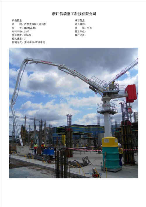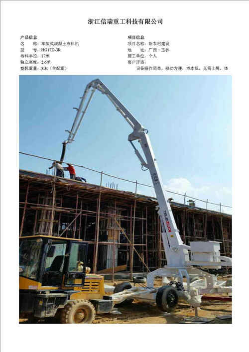 歸屬行業(yè):信瑞重工HG24A-3R樓面內(nèi)爬混凝土布料機(jī)