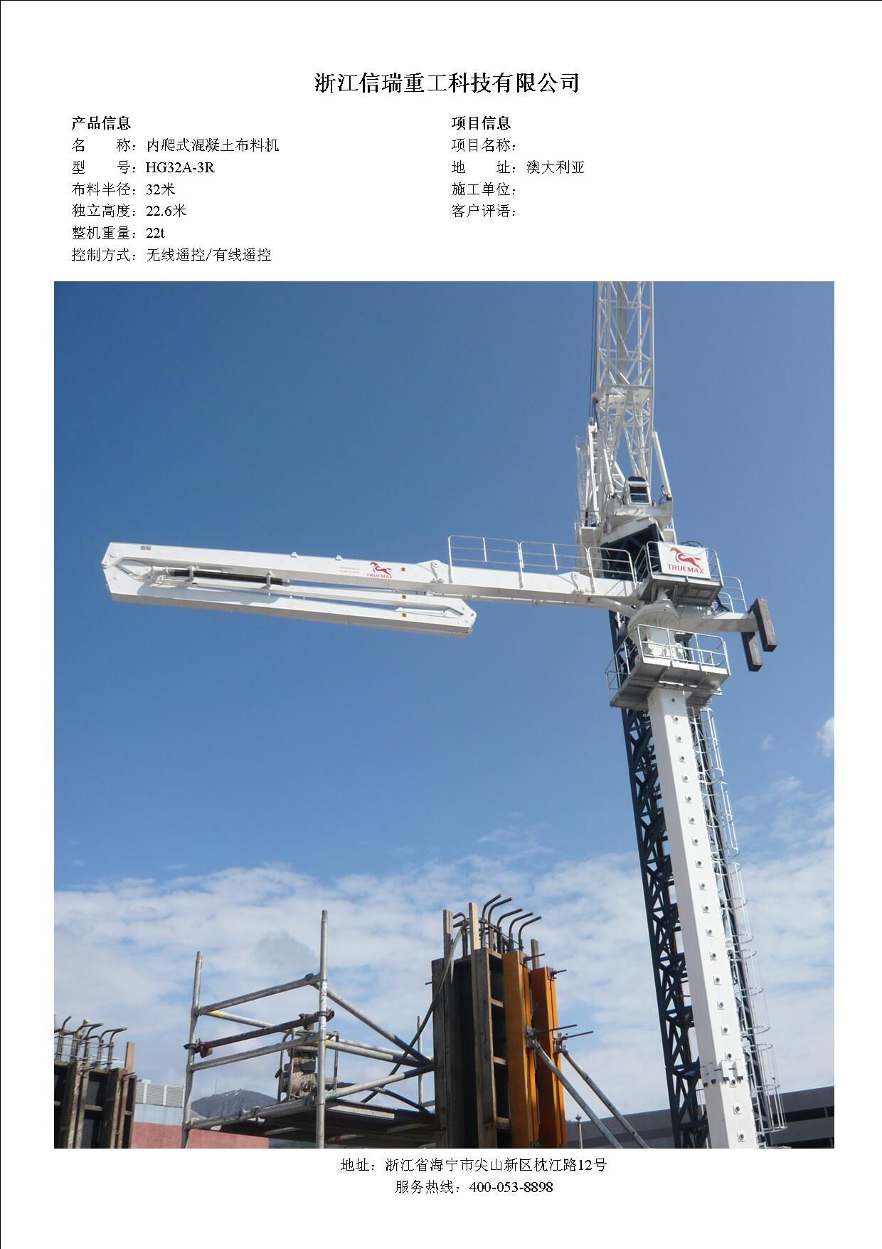 歸屬行業(yè):信瑞重工HG33A-4R內(nèi)爬式混凝土布料機(jī)