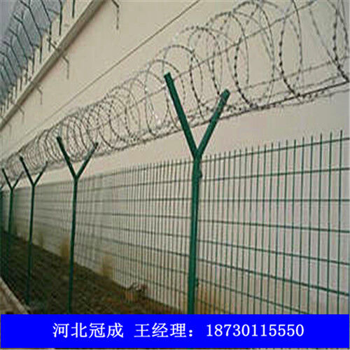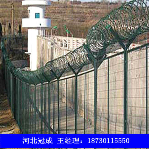 監(jiān)獄圍欄網(wǎng)可平地安裝,也可在圍墻上二次安裝,有效防止攀逃。直刺式刺網(wǎng)隔離帶,是用柱體和普通刺繩橫、縱、斜向交叉綁定成刺網(wǎng)隔離帶。主要用于特殊地帶、軍事基地圈護(hù)、溝壕圈護(hù),安裝簡易,經(jīng)濟(jì)耐用?! ?