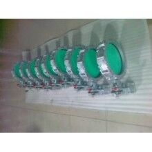 。頂部及底部相同的圓法蘭,具有一個頂部法蘭以及一個折邊部件,適用于一根柔性套管。粉體蝴蝶閥主要用于開關料箱,料斗以及裝有粉狀或是顆粒狀物料的筒倉??蓱糜谒蟹蹱罴邦w粒物料的處理,閥門利用物料自身重力進行截流以及氣動傳輸干性物料。粉體蝶閥可以安裝在料斗、料箱、筒倉、螺旋或其他類型的輸送機的下方,以及連接氣動輸送管道。由于此閥門的特殊結構以及工程材料的運用,它始終是一個非常經濟且極高效的選擇