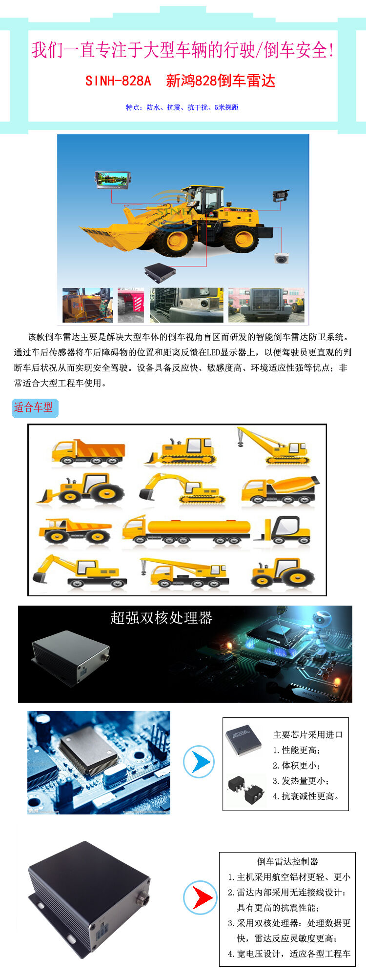歸屬行業(yè):鑫鴻528A倒車雷達,工程車倒車雷達5米探測,SINH-528A鏟車專用倒車雷達