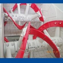 普通雙臥軸攪拌機(jī)的攪拌臂軸向及徑向均為流線型,攪拌過程中不僅對物料產(chǎn)生徑向切割作用,而且更有效的起軸向推動作用,使物料攪拌更劇烈,短時(shí)間達(dá)到混凝土的均質(zhì)狀態(tài),且由于攪拌裝置設(shè)計(jì)獨(dú)特,能提高了水泥的利用率。而具有專利設(shè)計(jì)的雙螺帶攪拌裝置,攪拌過程兩軸相向轉(zhuǎn)動,葉片產(chǎn)生的攪拌力,使攪拌進(jìn)物料在保證劇烈徑向運(yùn)動的同時(shí),軸向推動加劇,物料在攪拌筒內(nèi)成沸騰狀態(tài)短時(shí)間內(nèi)劇烈而充分?jǐn)嚢?,攪拌效率提?/span>10%15%其它結(jié)構(gòu)攪拌機(jī)與之相比甚遠(yuǎn)。從而使攪拌形式更多樣化,根據(jù)不同的混凝土要求,使攪拌更均勻,效率更高。