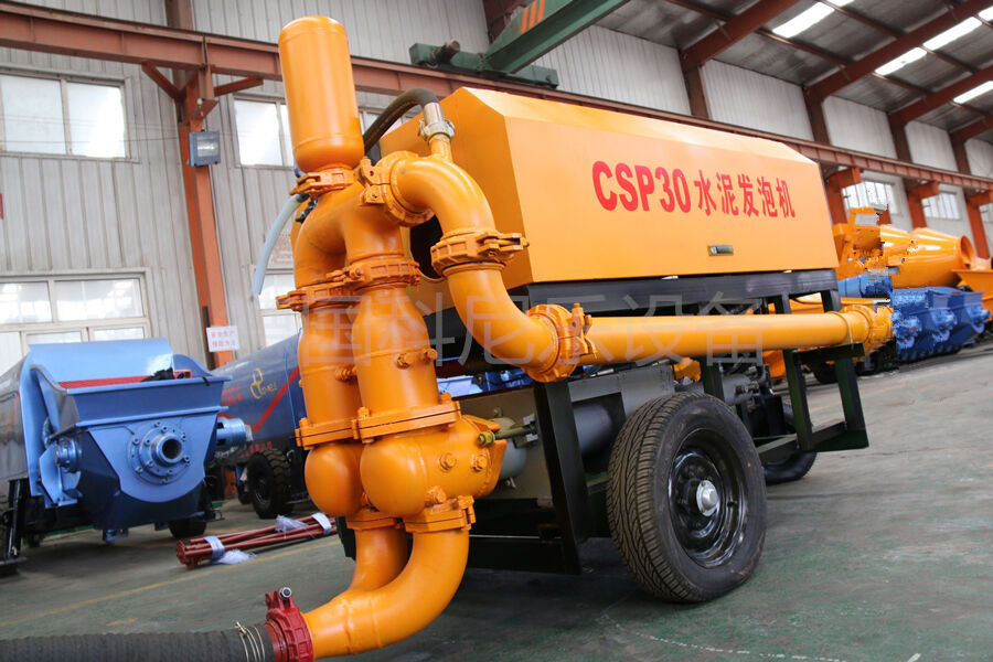 CSP系列中小型水泥發(fā)泡機,是我公司自主開發(fā)的專利產品專利產品。其中水泥發(fā)泡機由機械式改為液壓式,在相同條件下該設備所占空間更小,發(fā)泡效果更好,施工效率更高,性能更加穩(wěn)定。在地暖隔熱層施工中,以CSP-40為例,一臺單機單班施工量可達4000-5000平米(3cm厚度),輸送高度可達150米,水平距離達500米以上。水泥上料機和水泥攪拌機是其輔助設備,有了它們實現了上料和攪拌的自動化,節(jié)省了人員的勞動強度,大大提高了施工效率。