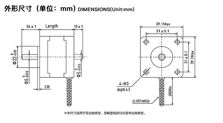 兩相1.8°混合式步進電機39系列步進電機