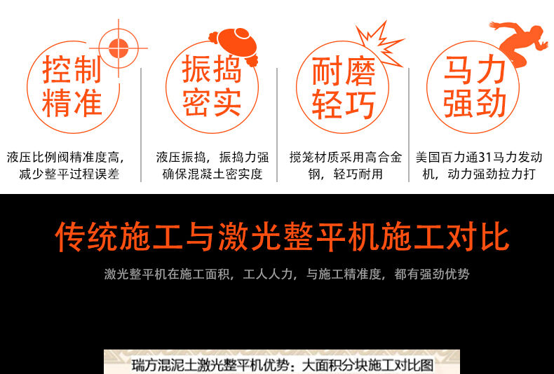奧力德激光整平機(jī)是根據(jù)現(xiàn)代工業(yè)廠房、大型商場、 及其他大面積水泥混凝土地面等對(duì)地面質(zhì)量如 、平整度、水平度等越來越高的需求而研制的。使用精密激光整平機(jī)鋪?zhàn)⒄降乃嗷炷恋孛?/span>,較按常規(guī)方法所鋪?zhàn)⒌牡孛尜|(zhì)量要好得多——地面平整度及水平度提高3倍以上,密實(shí)度及強(qiáng)度提高20%以上。同時(shí)還能夠提高工效超過50% , 并節(jié)省約35%的人工。此外,它能容易地鋪?zhàn)⒏邚?qiáng) 、低坍落度混凝土和纖維泥凝土。其激光系統(tǒng)配備多種自動(dòng)控制元件,以每秒10次的 實(shí)時(shí)監(jiān)測整平頭的標(biāo)高,確保鋪?zhàn)⒌牡孛嫫秸群退蕉鹊玫接行У目刂?。同時(shí),其強(qiáng)力振動(dòng)器振動(dòng)頻率達(dá)4000次/分鐘,確?;炷琳駬v密實(shí),使整個(gè)鋪?zhàn)⒌幕炷粱w均質(zhì)、致密