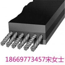 防撕裂鋼絲繩芯橡膠輸送帶該輸送帶在鋼絲繩芯上面(或上下)設(shè)置了橫向均勻排列的高延伸鋼絲繩或高強力高延伸化纖線繩作為抗撕裂層,抗撕裂層垂直于輸送帶運行方向。當(dāng)輸送帶輸送硬質(zhì)尖銳物料時,抗撕裂層可阻擋尖銳硬物刺穿,一旦刺穿后還可產(chǎn)生足夠抵抗尖銳硬物撕裂膠帶的阻力,從而有效防止輸送帶撕裂現(xiàn)象發(fā)生.