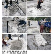 如果用普通水泥混凝土養(yǎng)護(hù)周期再少得一周,公路是重要的交通樞紐,不可能封路那么久。在反復(fù)對(duì)比分析下,四川阿壩自治州公路局決定采用一種新型材料—搶修寶快速修補(bǔ)料修復(fù)病害。這種快速搶修水泥在保證質(zhì)量的同時(shí),可以快速通車。30分鐘凝固,2-4小時(shí)通行,2小時(shí)強(qiáng)度可達(dá)到C30,施工工藝簡(jiǎn)單,好掌握,修補(bǔ)效果好,已經(jīng)在全國(guó)范圍內(nèi)獲得了廣泛的運(yùn)用。