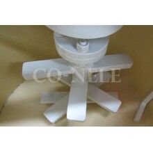 ◎在造粒過程中,造粒筒體以較低速度順時針旋轉,造粒工具組高速逆時針旋轉,旋轉的造粒筒體將物料輸送至造粒工具組運動軌跡內,同時固定安裝的刮刀打散物料流,在旋轉筒體、高速造粒工具以及固定刮刀的共同作用下,形成復雜的三維混合造粒物料流,實現(xiàn)物料的快速高質量均化,同時完成制球造粒。