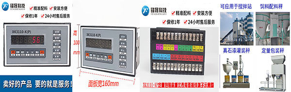 HZS50攪拌站XK3110K(P)稱重包裝秤定量稱重控制儀表,采用高精度信號(hào)采樣技術(shù)和智能控制軟件,集稱重、配料、控制于一體的高端儀表。xk3110k(p)稱重控制儀表廣泛應(yīng)用于冶金、包裝、飼料、石化、煙草、建筑等行業(yè)的自動(dòng)配料過(guò)程控制。