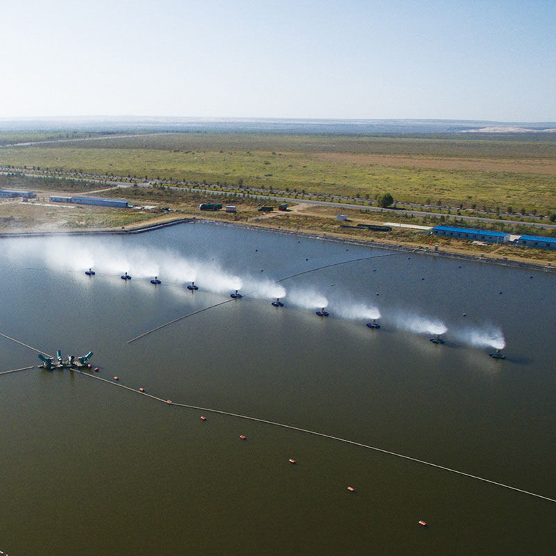 通過高速旋轉(zhuǎn)葉輪將水破碎至100微米粒徑小液滴,形成水霧,利用自然天氣條件進(jìn)行蒸發(fā)。強(qiáng)制蒸發(fā)的作用:可增強(qiáng)蒸發(fā)效果14~30倍,蒸發(fā)同樣的廢水所需蒸發(fā)塘面積可降低到原來的1/10。