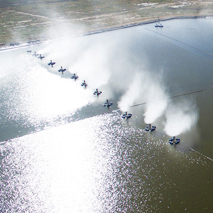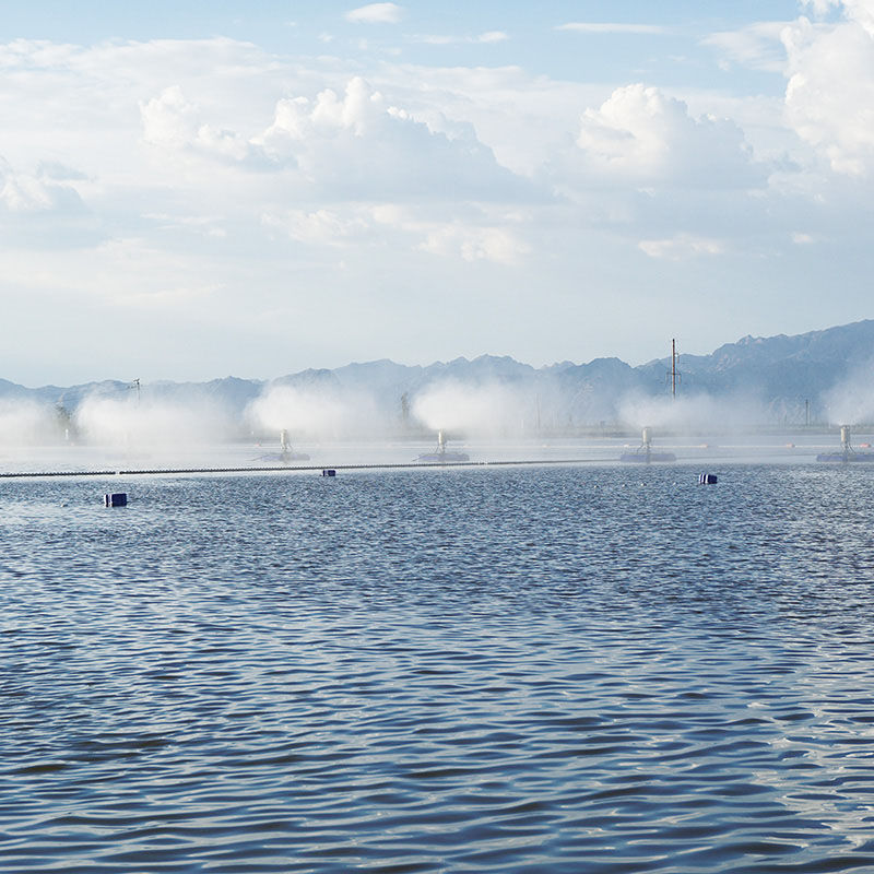 并且占地面積小、投資成本低。還有一種是風(fēng)送式蒸發(fā)器、風(fēng)送式蒸發(fā)器是把蒸發(fā)設(shè)備架在岸邊、利用高速旋轉(zhuǎn)的風(fēng)機把水破碎噴灑在天空中進行蒸發(fā),這種和漂浮式蒸發(fā)器效果類似